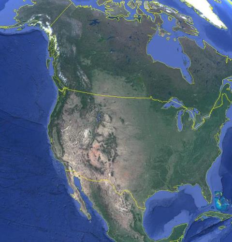 | 今、山へ>遠征>コロラド14ners>1.コロラド14ersとは 1.コロラド14ersとは 北米大陸にはロッキー山脈が南北に走っており、これが大陸の分水嶺となっている。 ![]() 図1 北米大陸 google earthから |