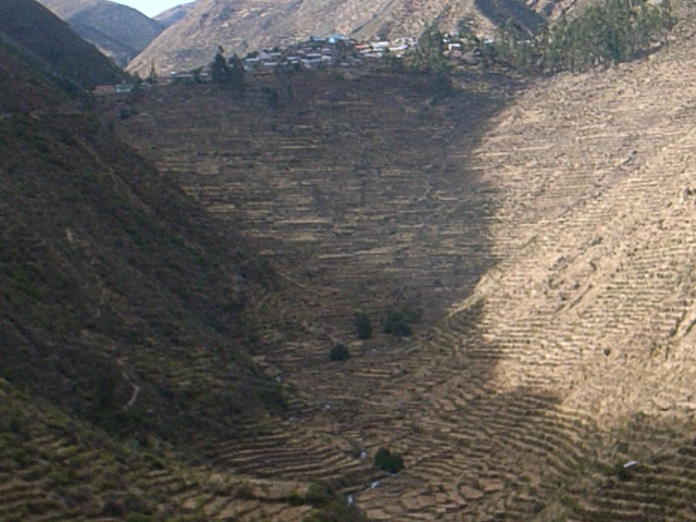 ![]() 24 ペルー 3つの氷河の山に登った。 ![]() 山麓は乾燥し、氷河の水が細い水路で導かれていた。 氷河の崩壊、融解は山麓の生業に大きな影響を与えている。