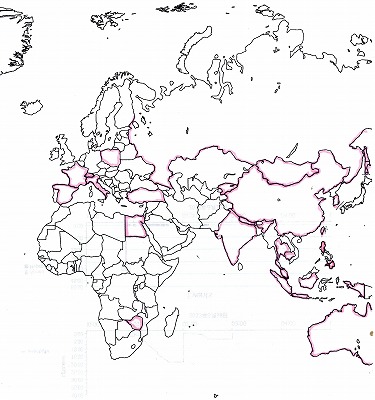 ![]() (子ども用 世界地図 【白地図 / 国境線のみ】 無料ダウンロード・印刷|ちびむすドリル【小学生】) 66回を各国ごとに各渡航を目的別に①留学、②用務、招聘、③ODA、④旅、⑤登山に分け、作表し、目次としている。 大まかに分けると、66回はおおむね在官時(1993年まで)と退官後に二分され、目的別では在官時は①、②、③が主で、退官後は ④、⑤が主である。