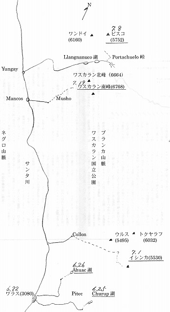 ピスコ峰5750mに登って再度ワラスで休養し、最後にペルー最高峰のワスカラン6768mに登った。 ![]() |